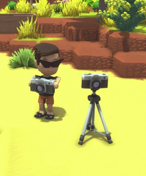 The Camera is a tool used to take photos outdoors (not inside buildings). These photos are saved forever unless they are deleted or given away to townspeople. Cameras can be used simply to capture memories or to fulfil townsperson quests.